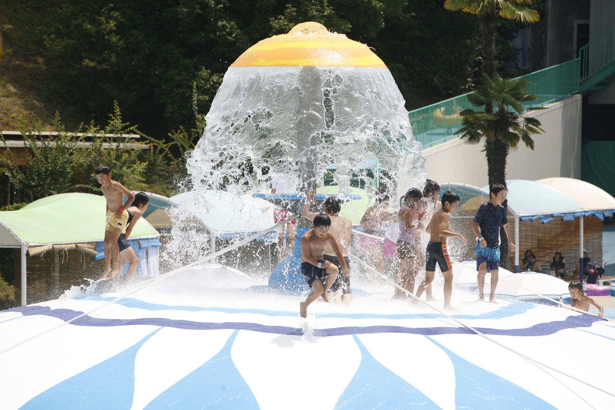 みろくの里のレジャープールは、5つの個性あるエリアから構成され、西日本最大級の直径20メートルの巨大なトランポリンドームをはじめ、楽しみ方が異なる3つのウォータースライダーも爽快です。また、子ども専用のキディスライダーや水深の浅いプール等、小さなお子さまもお楽しみいただけます。