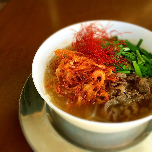 ~ベトナムの米麺を使った牛ベースの温かいヌードル。蓮根チップがアクセント!~