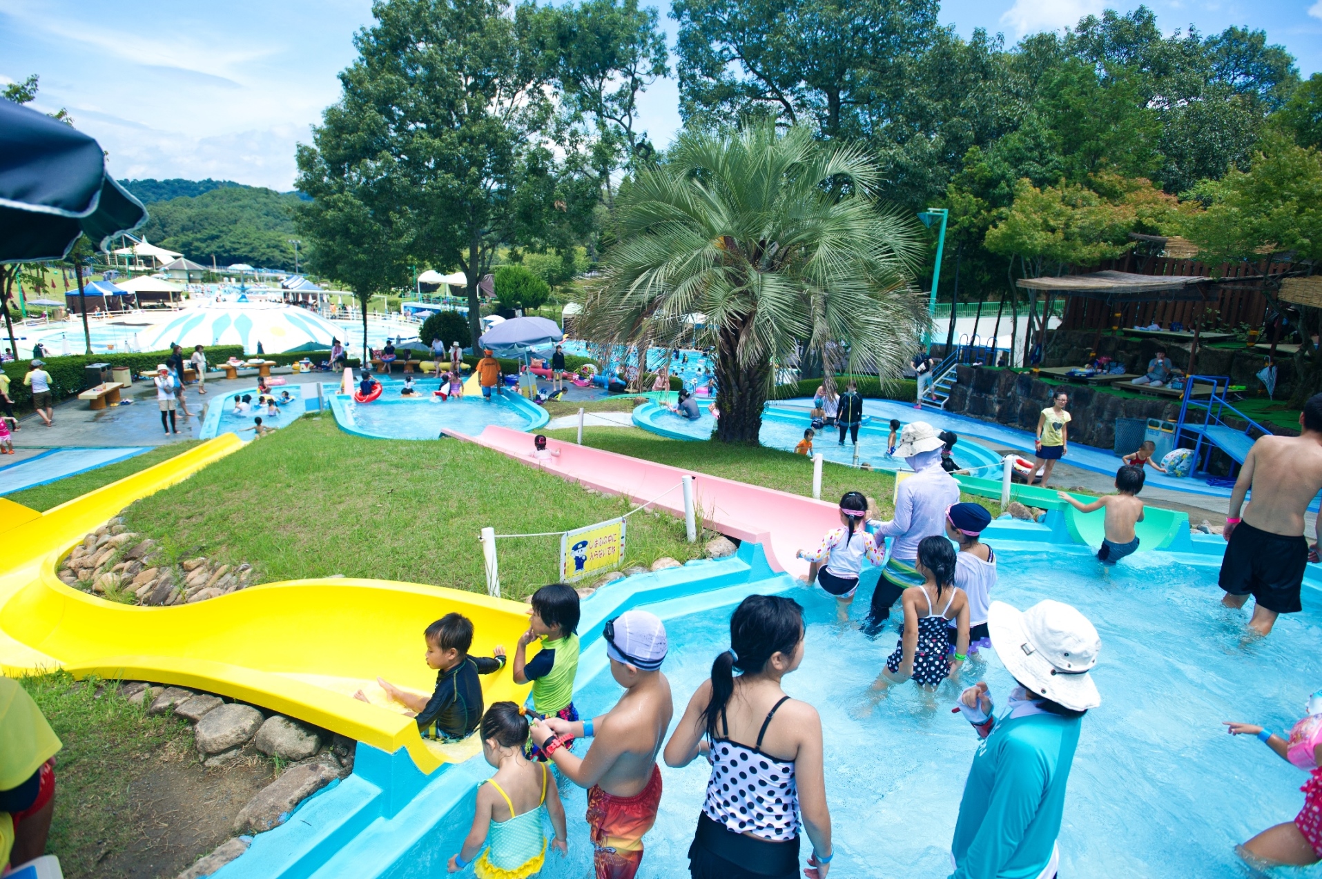 [ウォータースライダー]傾斜角度の異なる3種類のウォータースライダー