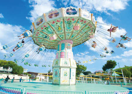 1989年に開業。1998年に昭和30年代の街並みを再現した「いつか来た道」をオープン。27万平方メートルの広大な敷地に22種類のアトラクション、アスレチックパークや温泉施設を併設。2017年にはダイナソーパークをオープン。夏はレジャープール、冬はイルミネーションと、1年を通じて三世代・家族みんなでお過ごしいただけるレジャー施設です。