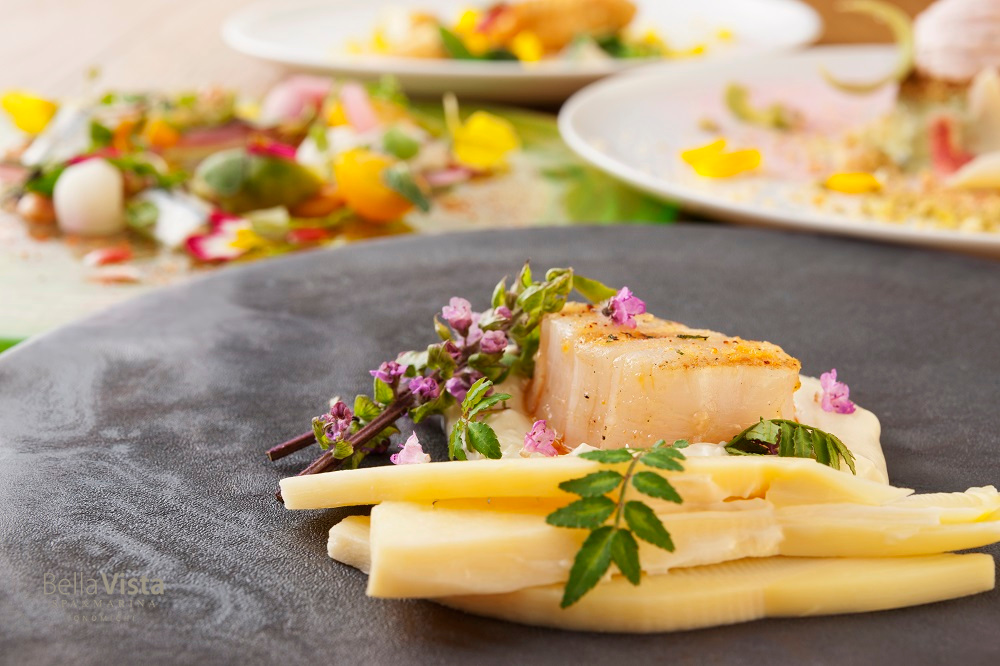 新タケノコやフキノトウ、グリーンアスパラガスなどは歯ごたえ十分。見た目の初々しさや弾けるような発色のみならず、クリーミーな味わいと芳しい香りは春先ならでは。