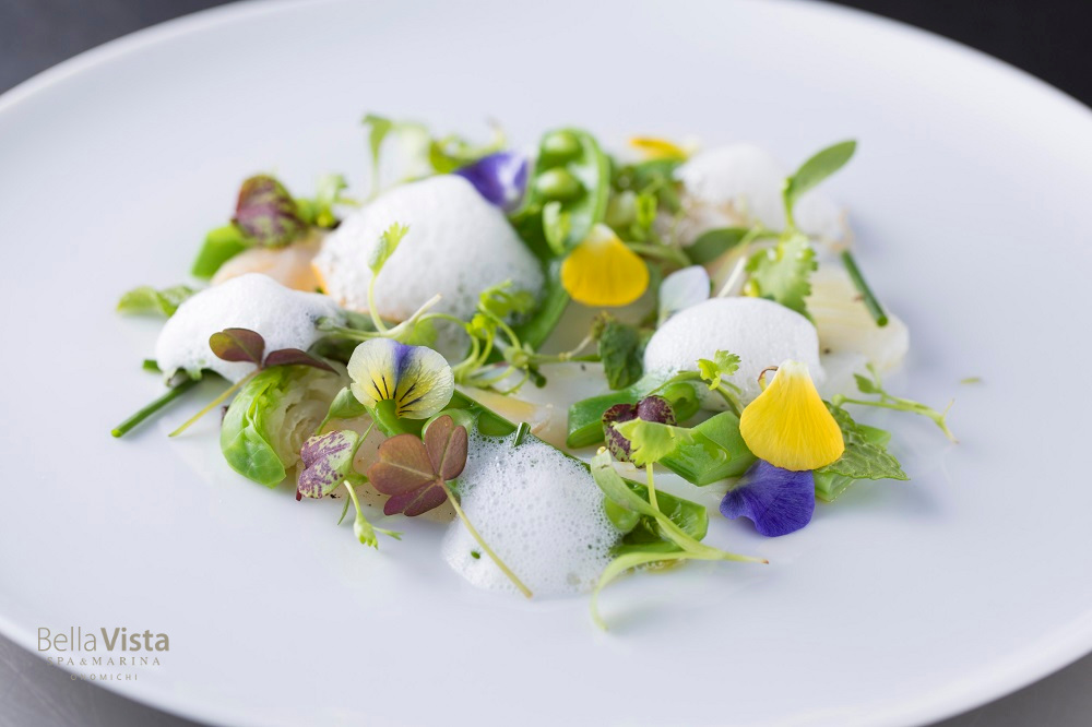 ディナーは、白魚やマナガツオなど旬の鮮魚たちが、素材の風味引き出す食彩とともにハツラツとした装いで顔見世。